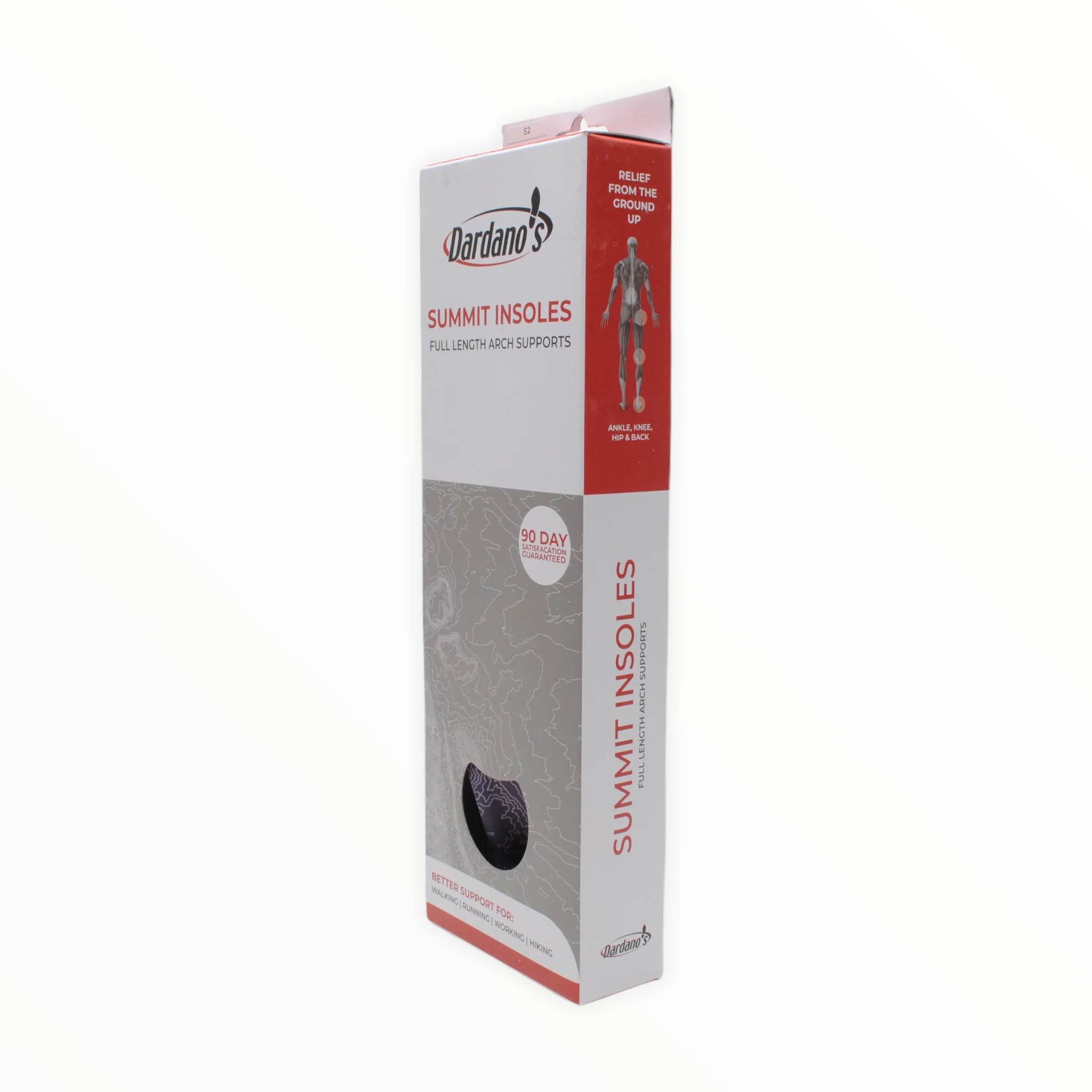 - Take your comfort to the next level with Dardano's Summit Series Insoles. These full length replacement insoles offer better alignment and support your feet. Protect your feet from the aches and pains of your daily activities. Walk with confidence having a pair of Summit Insoles in your shoes.